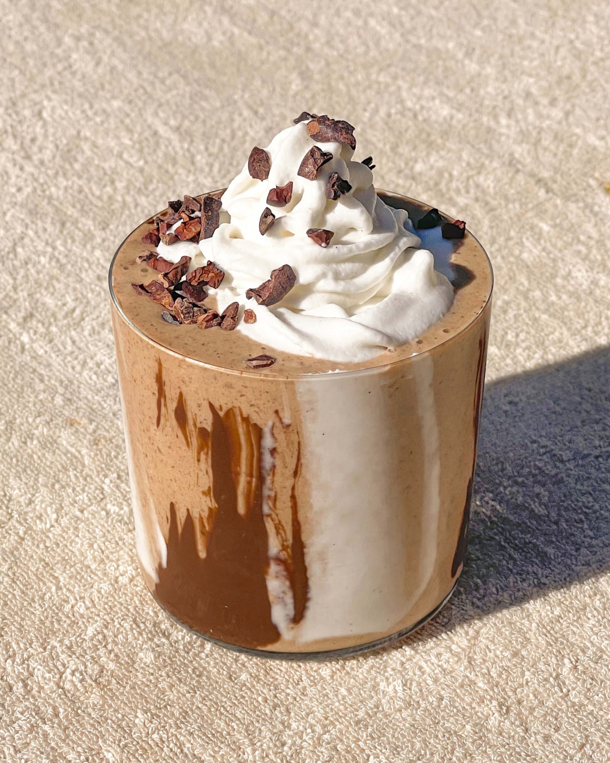 Top smoothie with COYO Whipped Cream, sprinkle cacao nibs on top and sip away!